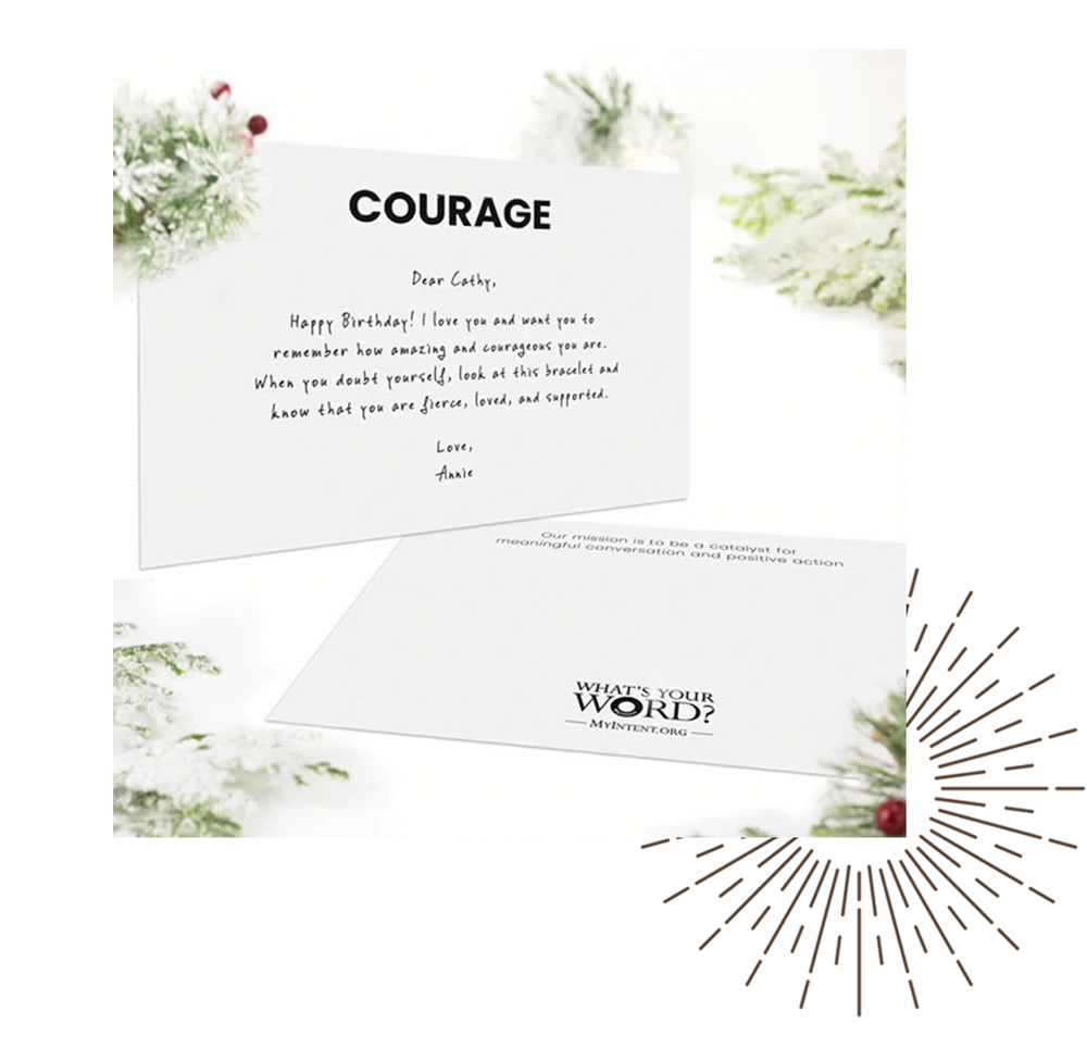 All custom bracelets come attached to a card signed by the artisan who handstamped your bracelet and inside a MyIntent pouch.