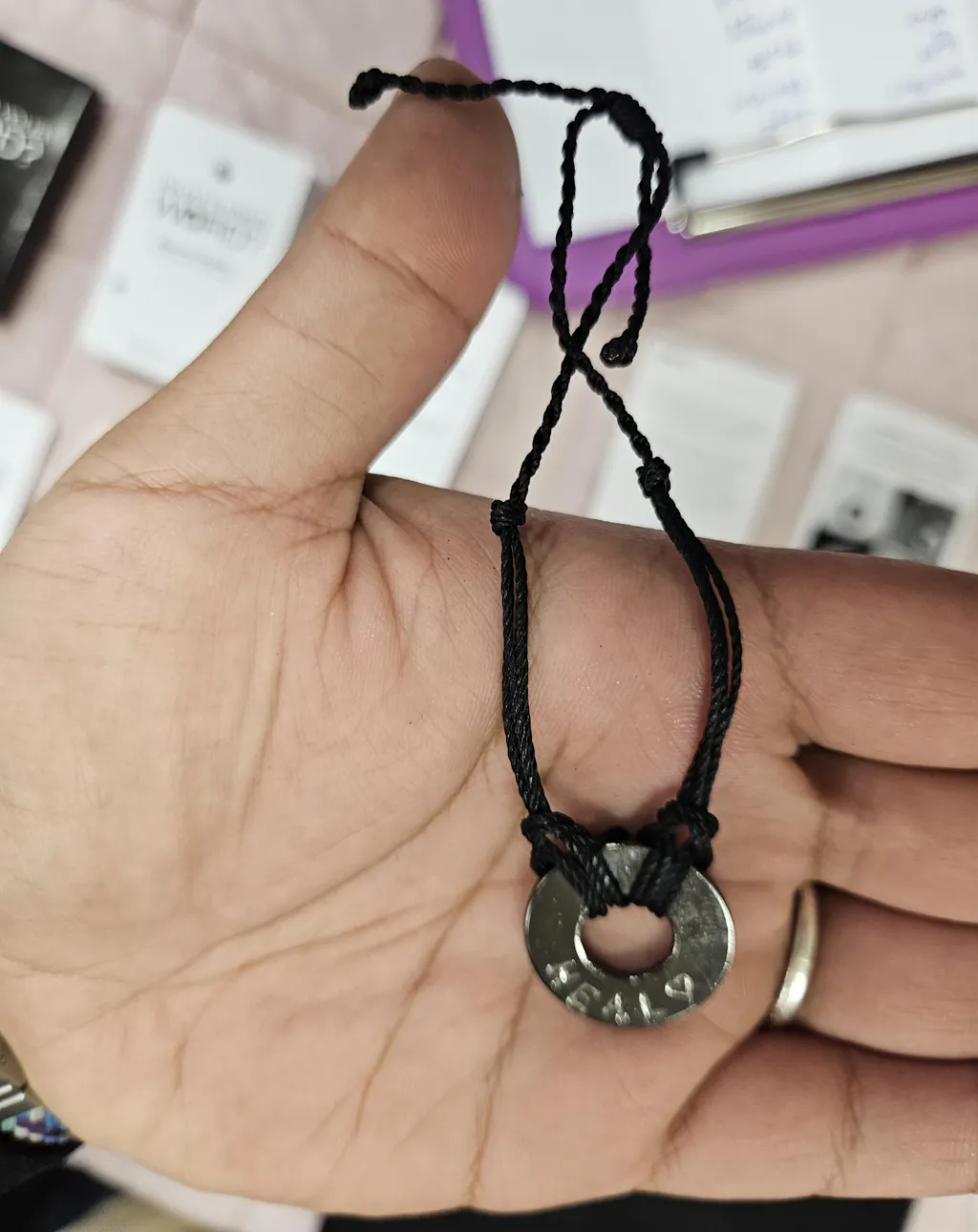 The token of each bracelet is blank on the front side for you to engrave the word of intent. The back side of the token comes pre-engraved with MyIntent branding for authenticity.