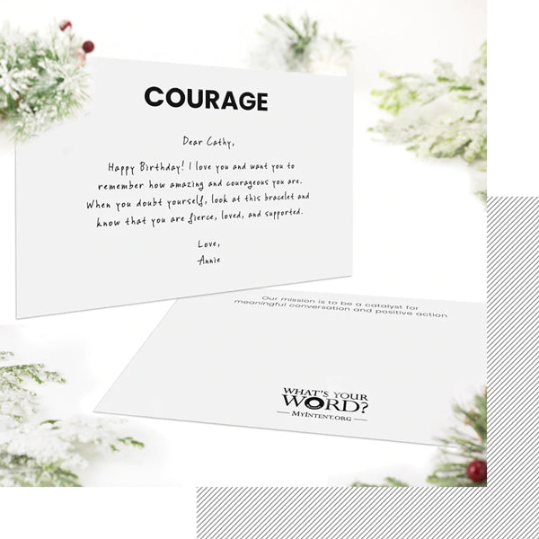 All custom bracelets come attached to a card signed by the artisan who handstamped your bracelet and inside a MyIntent pouch.